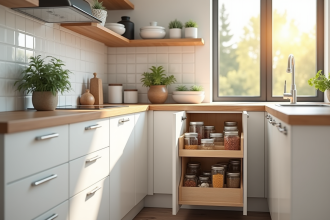 Les plafonniers encastrés ou les appliques murales sont des options populaires, offrant une lumière diffuse qui évite les ombres gênantes. Pour ceux qui recherchent une touche de style, des suspensions élégantes ou des spots orientables peuvent ajouter du caractère tout en éclairant efficacement l’espace.